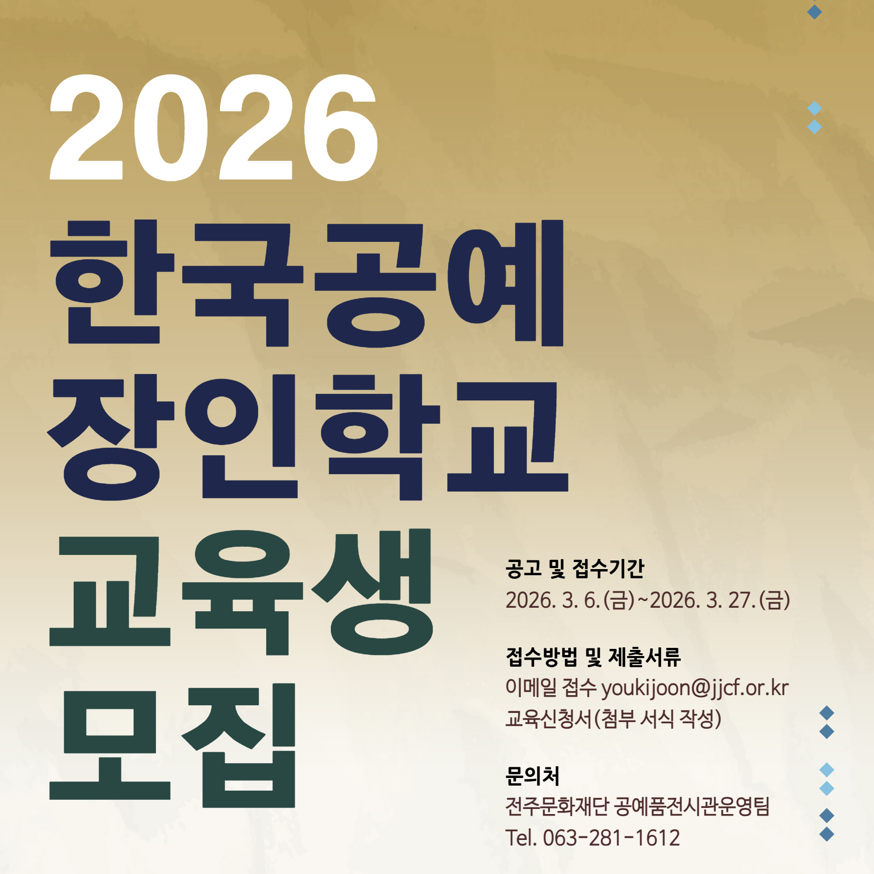 55045 전북특별자치도 전주시 완산구 태조로 15 (교동 65-5) 공예품전시관 TEL 063-281-1610 FAX 063-232-8889 관리자 로그인