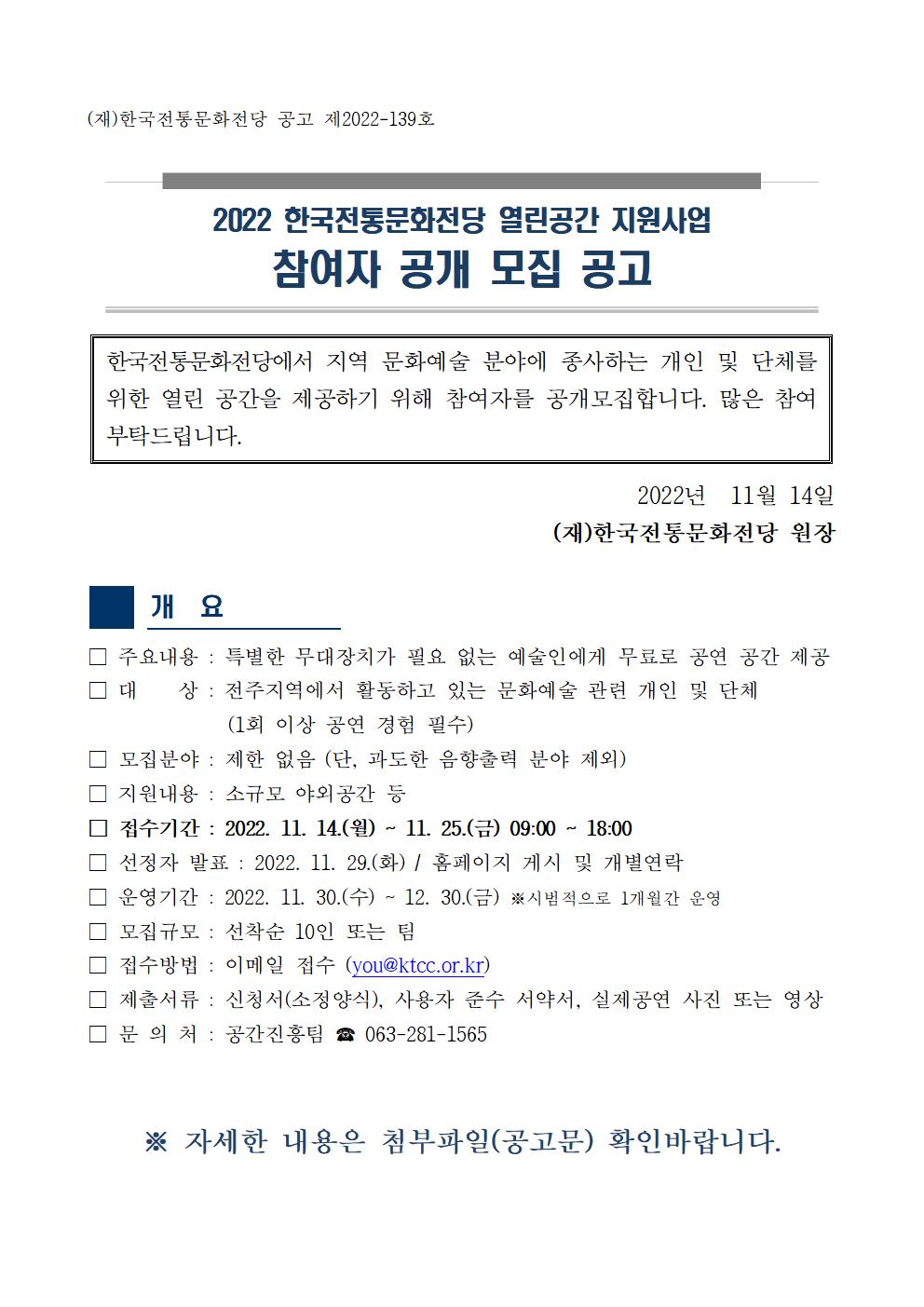 마감 [KTCC] 열린공간 지원사업 참여자 모집공고