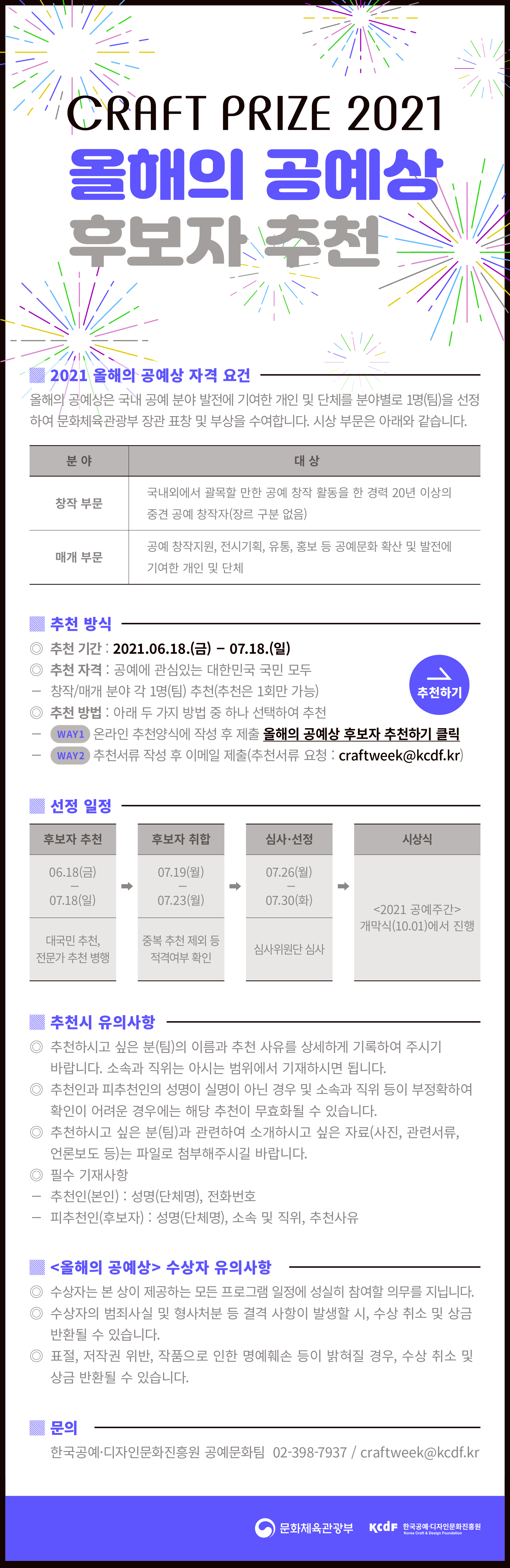 마감 [KCDF] 2021 올해의 공예상 후보자 추천