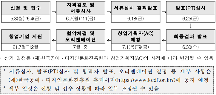 ○ 최종선정자는 협약기간 내 창업 교육, 사업화 코칭, 네트워킹 참여 등 (재)한국공예ㆍ디자인문화진흥원과 창업기획자(AC)