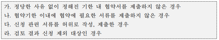 1) 다음 중 어느 하나에 해당 시 협약 체결 불가
