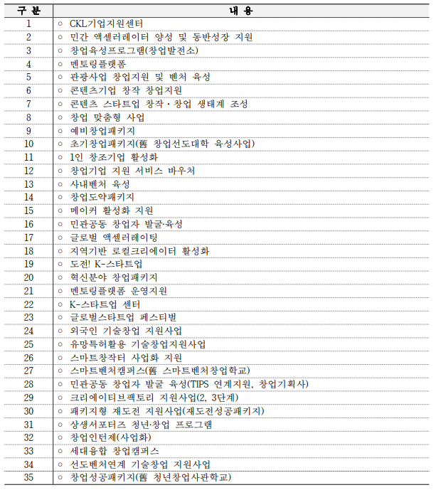 ※ 아래 사업 외 주관사가 판단하기에 문화체육관광부 등 중앙부처, 공공기관의 창업 사업화 지원 사업에 해당된다고