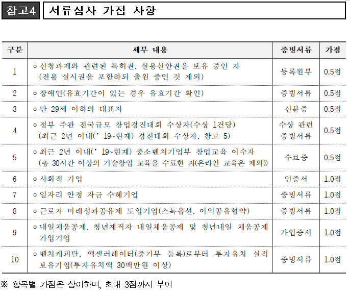 ※ 서류심사 가점 사항 : 최대 3점 이내 부여([참고 4] 참조)