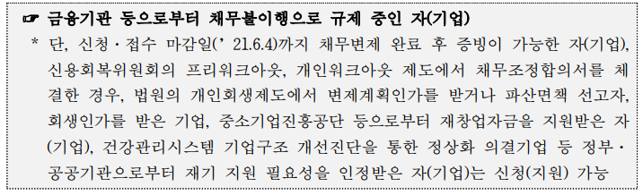 ○ 공동대표 또는 각자대표로 구성된 기업의 경우, 대표자 전원이 ‘신청 자격’에 해당되고, ‘신청 제외 대상’에 해당되지 않아야 함