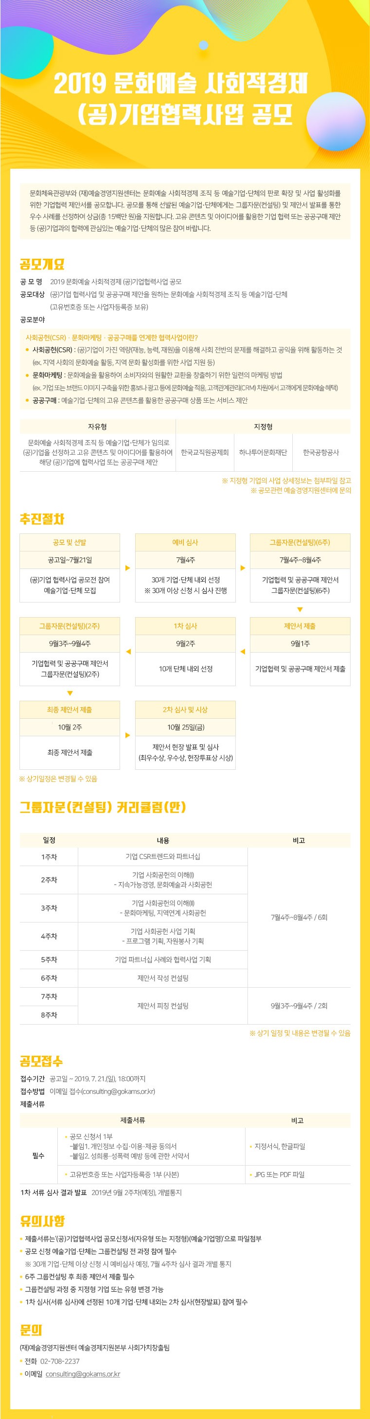 마감 [예술경영지원센터] 2019 문화예술 사회적경제 (공)기업협력사업 공모