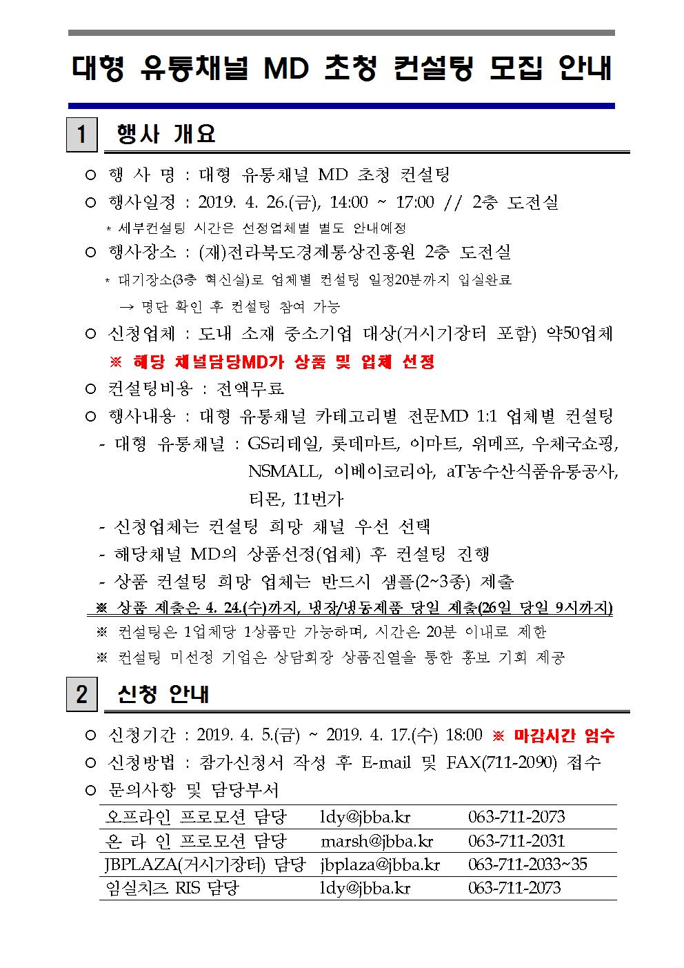 마감 대형 유통채널 MD 초청 컨설팅 참여업체 모집