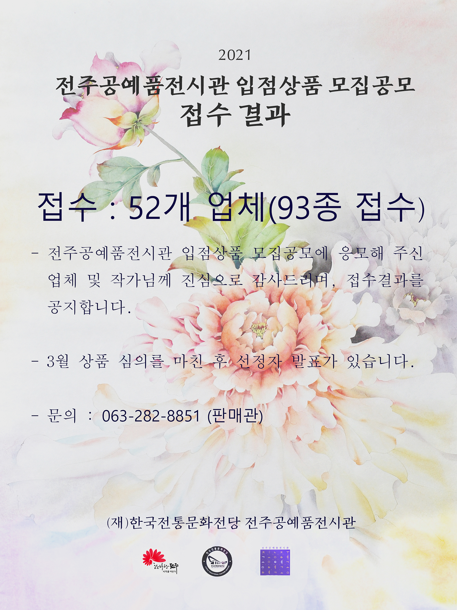[접수결과]2021 전주공예품전시관 입점상품 모집공모 접수 결과