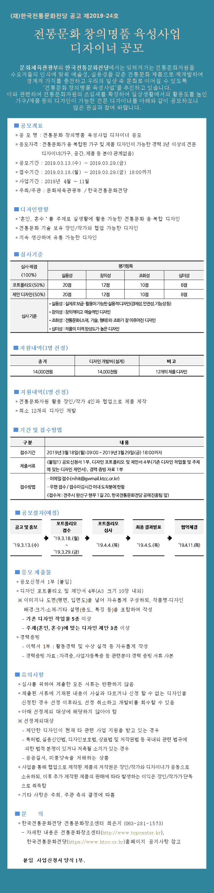 2019 전통문화 창의명품 육성사업 디자이너 공모