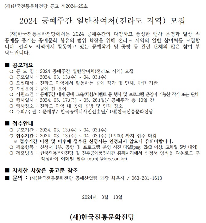[공예주간] 2024 공예주간 일반참여처(전라도 지역) 모집