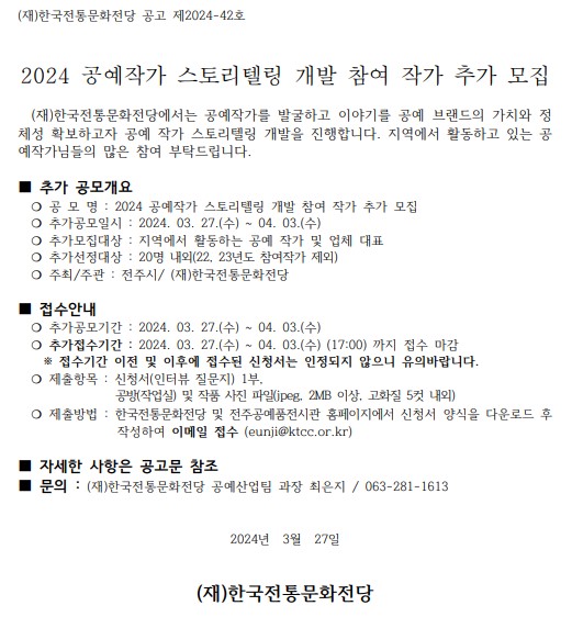 2024 공예작가 스토리텔링 개발 참여작가 추가 모집