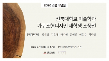 - 전시명 : 2026 조형디딤전 - 전시기간: 2026. 2. 19.(목) - 3. 1.(일)- 전시장소: 전주공예품전시관 전시1관- 참여작가: 김세강, 김은채, 라지현, 문현진, 심..