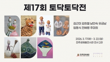 - 전시명: 제 17회 토닥토닥전- 전시기간: 2026. 3. 17.(화) - 3. 22.(일)- 전시장소: 전주공예품전시관 전시2관- 참여작가: 김근미, 김희철, 남안숙, 유금남, ..